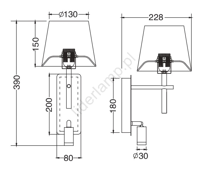 • Lampa wyposażona jest w lampkę LED do czytania (3000K) z możliwością regulacji kierunku świecenia.