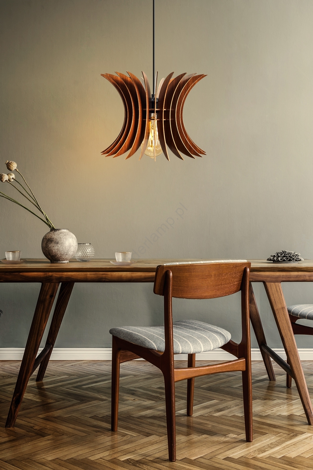 • Lampa wisząca na przewodzie w kolorze brązowym.
