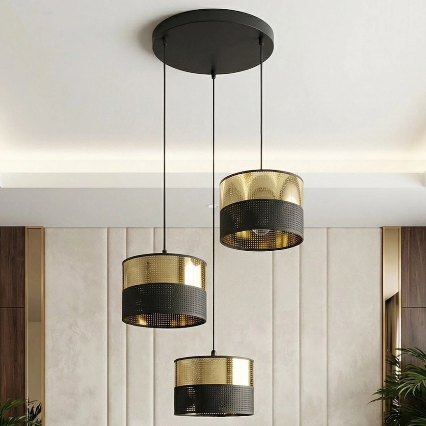 • Żyrandol na lince LUX 3xE27/15W/230V czarny/złoty