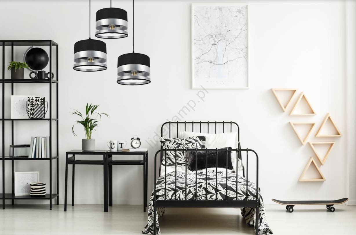 • Żyrandol na lince MILO 3xE27/60W/230V srebrny/czarny