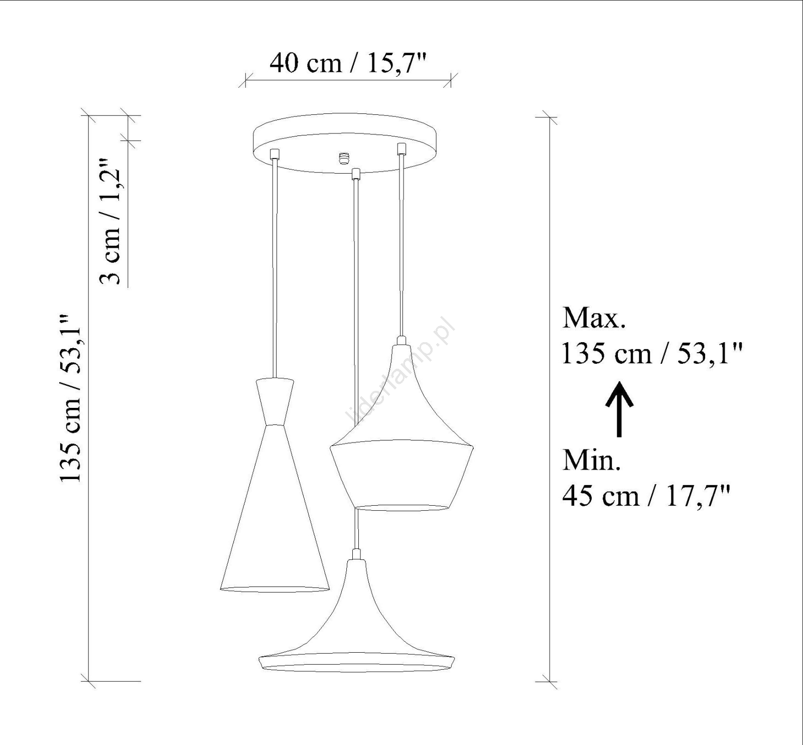 • Lampa wisząca TOM na przewodzie 3xE27/40W/230V pomarańczowa