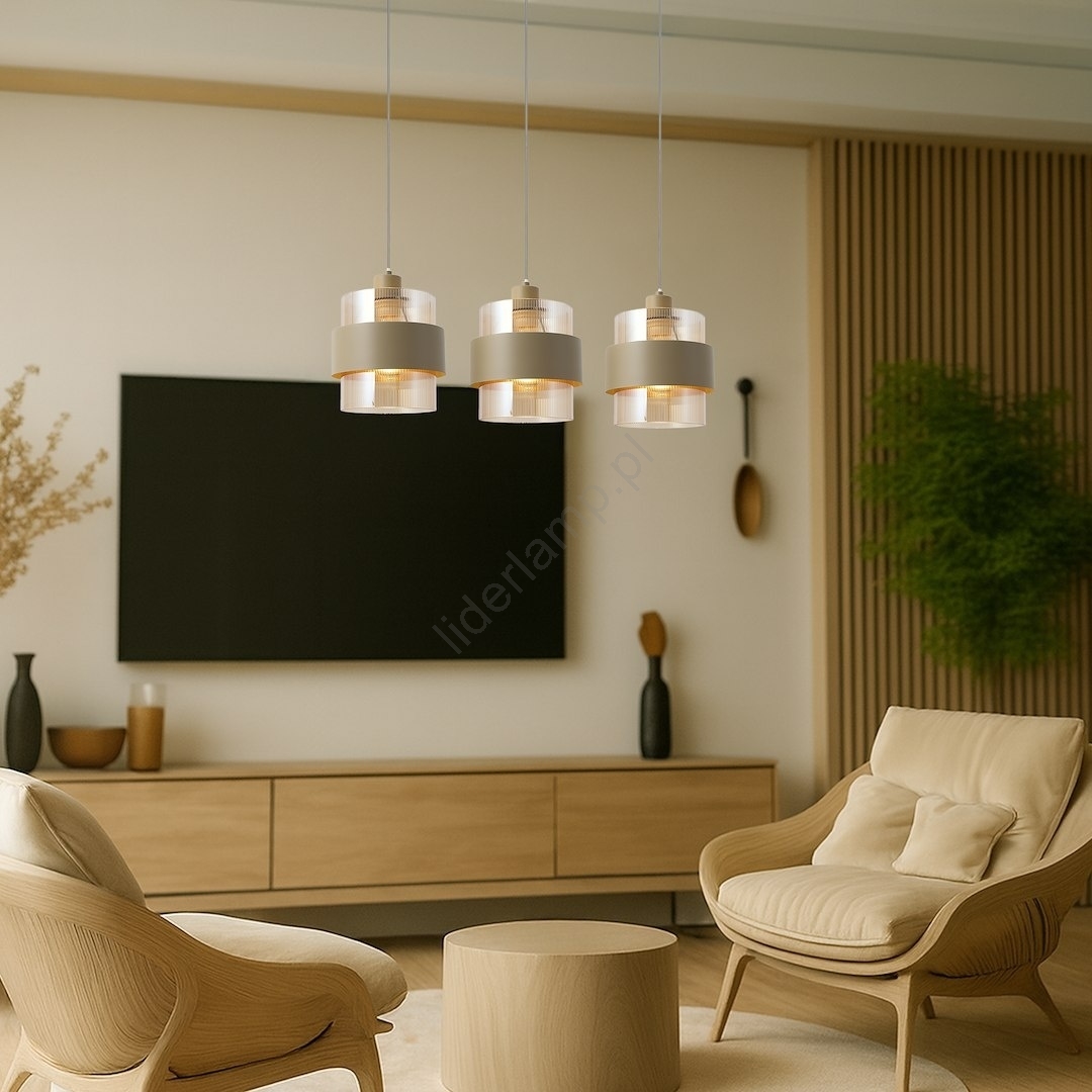 Žyrandol na lince VALENTINO 3xE27/15W/230V beżowy/przezroczysty charakteryzuje się ładnym i funkcjonalnym designem.  Do lampy pasuje żarówka z trzonkiem E27. Tutaj kupisz inne żarówki w korzystnych cenach. Będziesz mieć ciekawy dodatek do swojego domu.