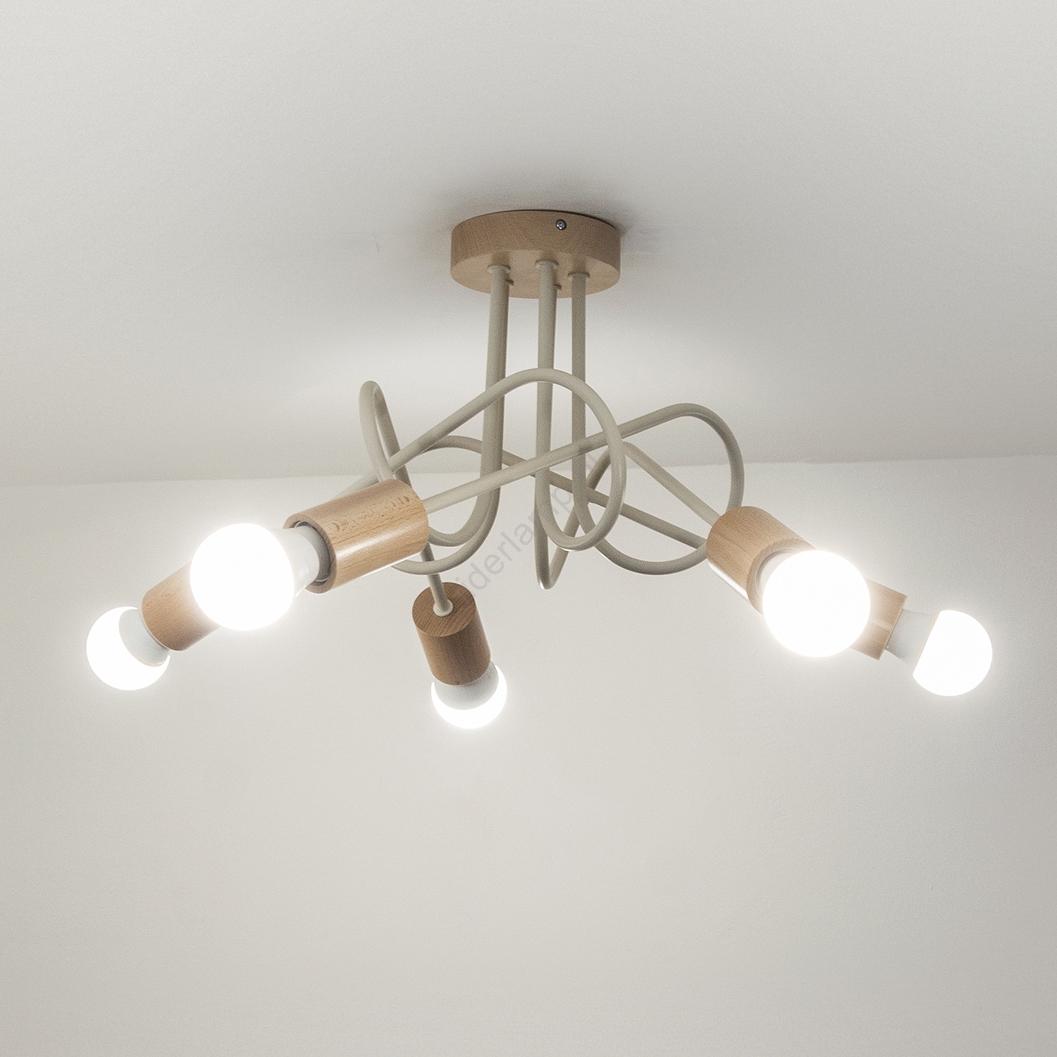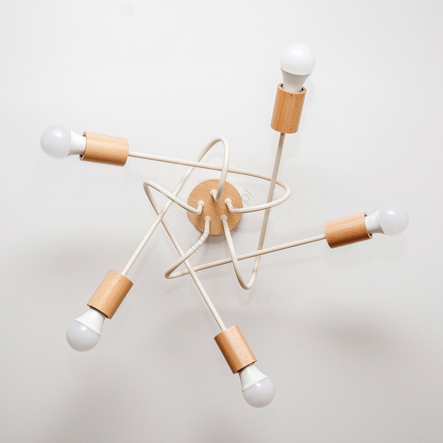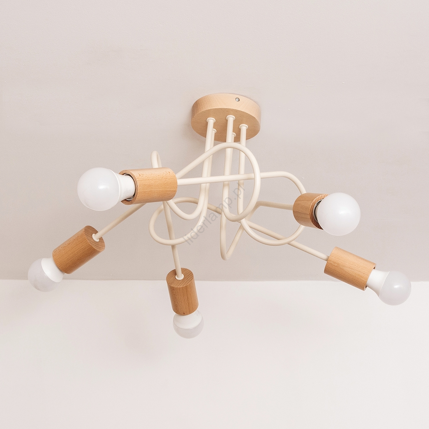 Žyrandol natynkowy OXFORD 5xE27/15W/230V sosna/kremowy charakteryzuje się ładnym i funkcjonalnym designem.  Do lampy pasuje żarówka z trzonkiem E27. Tutaj kupisz inne żarówki w korzystnych cenach. Będziesz mieć ciekawy dodatek do swojego domu.
